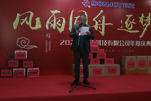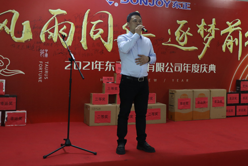 此次年會不僅給大家?guī)砹藲g聲笑語,同時也讓同事之間彼此的心更加貼近。公司領(lǐng)導(dǎo)與員工親切互動、激動人心的抽獎活動,讓歌聲、掌聲、歡呼聲一直在會場上蕩漾。整場年會高超迭起,呈現(xiàn)出東正這個大家庭的歡樂和諧。