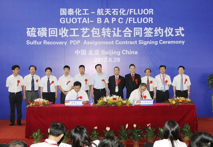 6月28日,北京航天石化與鄂爾多斯市國(guó)泰化工有限公司就美國(guó)福陸公司硫回收工藝包轉(zhuǎn)讓合同,進(jìn)行了簽約儀式,儀式在北京中國(guó)國(guó)際展覽中心舉行,《中國(guó)化工報(bào)》以專題報(bào)道的形式,在7月3日二版科技創(chuàng)新版面對(duì)簽約相關(guān)事項(xiàng)進(jìn)行了頭條刊登。